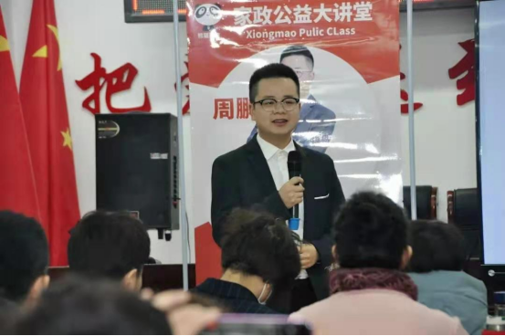 2020年周鹏为服务更多家庭和更多家政公司,周鹏本人开始了全国授课,周鹏被郑州商务局和南宁商务局及东莞商务局等政府受邀授课,且多次登上当地媒体平台,而周鹏公司也开始在当地达州各个社区开展公益活动讲座,公益活动主题主要围绕家庭教育以及母婴服务开展。2020年4月份周鹏被北京小熊美家科技有限公司聘请为讲师和创业导师,该公司主要服务于全国家政公司,致力于为全国家政公司提供软件办公系统,2020年该公司完成了千万级A轮融资,该公司特聘周鹏协助服务其旗下所有公司。
