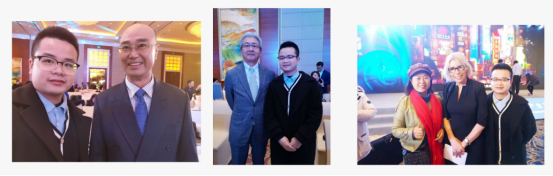 2019年12月份周鹏参加了首届中国家政产业发展投资国际论坛会,与北京亚瑟投资有限公司董事长陈九霖交流合影;和日本滋庆学园集团理事交流合影;和英国诺兰德学员院长Julia Gaskell交流合影。