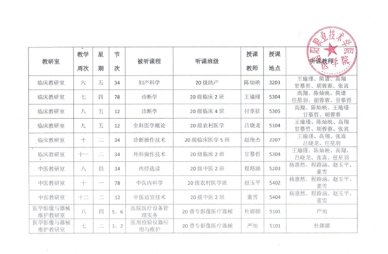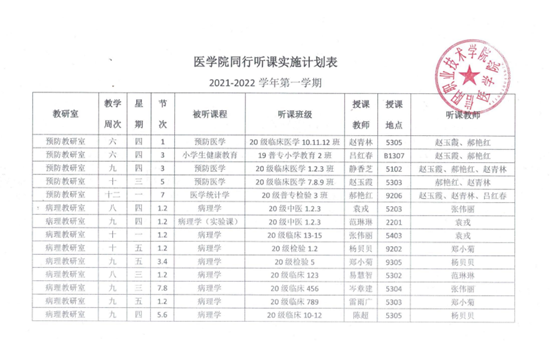 2021-2022学年第一学期BEAT365英国官网同行听课实施计划表