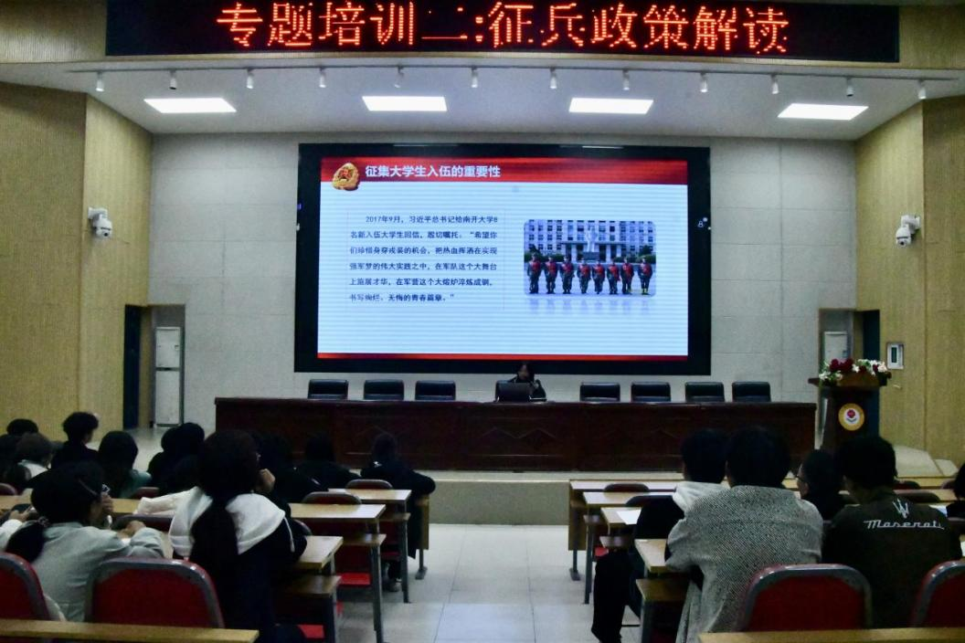 随着国防现代化建设推进,征兵工作是国家战略布局的重要部分。赵俊杰主任以《征兵政策解读》为主题,为学生干部解读2025年征兵政策。课程围绕大学生入伍战略意义、专项优惠政策、资格条件及规范要求三大核心维度展开讲解,为有入伍意向的学生提供政策指引与解答。