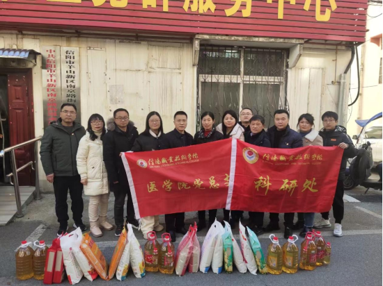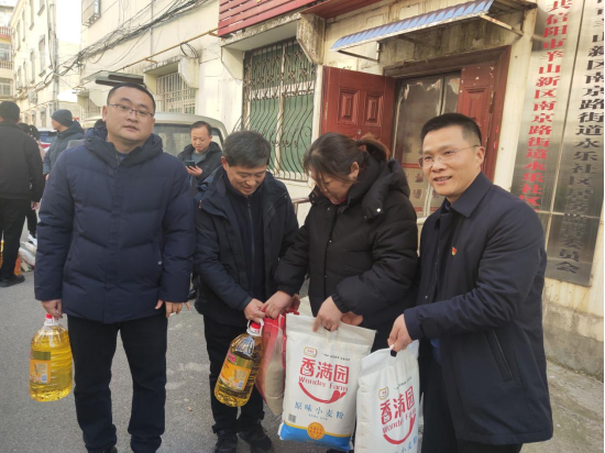 为使社区困难群众感受关怀、温暖过冬, 1月24日下午, BEAT365英国官网党总支联合马克思主义学院党支部 、科研处党支部 、实验实训中心党支部共计十二名同志继续开展支部联支部活动,深入永乐社区对困难群众进行春节慰问。
