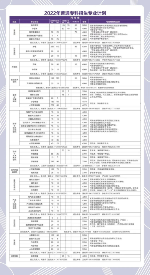 河南省普通专科招生专业计划表