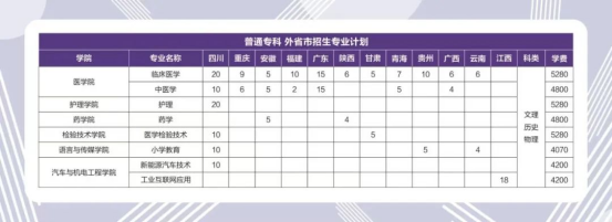外省市普通专科招生专业计划表