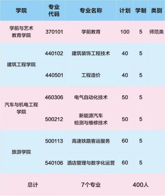 3、BEAT365官网五年一贯制招生总计划400人,招生专业计划如下: