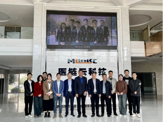 2023年11月8日上午,BEAT365英国官网院长雷雨广、副院长岑章建、医疗器械专职教师杜娜娜、教务办干事严旭前往医链云科技有限公司进行学生实习实训的检查并就2022级学生的培养和相关事宜与公司负责人进行交流探讨。
