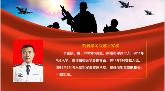 当代青年生逢其时,肩负重任,当志存高远、脚踏实地,希望我们每个人都能把个人的理想追求融入到党和国家事业之中,为党、为祖国、为人民多做贡献,积极参军入伍!