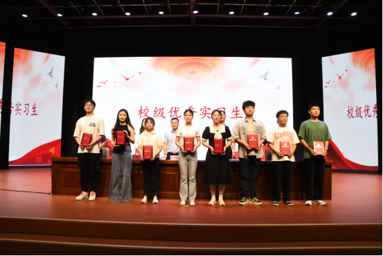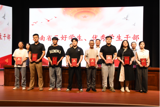 在庄严的国歌声中,典礼正式开始。典礼上,静香芝副院长宣读了河南省先进班集体、三好学生、优秀学生干部、优秀毕业生表彰名单;岑章建副院长宣读了BEAT365英国官网优秀毕业生、优秀实习生表彰名单。获奖学生依次上台由学院领导颁发获奖证书,并合影留恋。