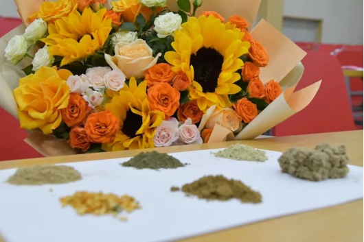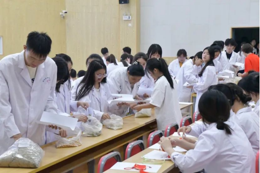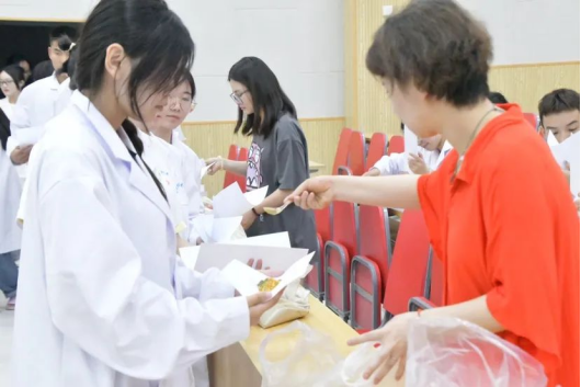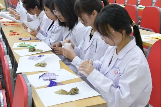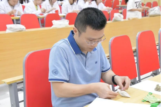 香囊淡淡,情意浓浓,为了更好的保证香囊的质量与实用性,在准备初期,程老师精心挑选药材并带领香囊小组耐心打磨。其中所采用的香料有:丁香,藿香、紫苏叶、金银花、薄荷、陈皮和艾草,相须相使之间只为将香囊品质愈加提高,将最好的展现给亲爱的“杏仁”们。本草的芳香承载的不仅仅是中医中药文化,也承载着老师学长学姐们对新生的满怀期待和关爱。