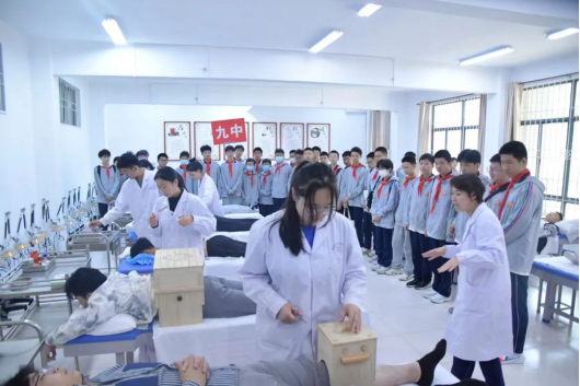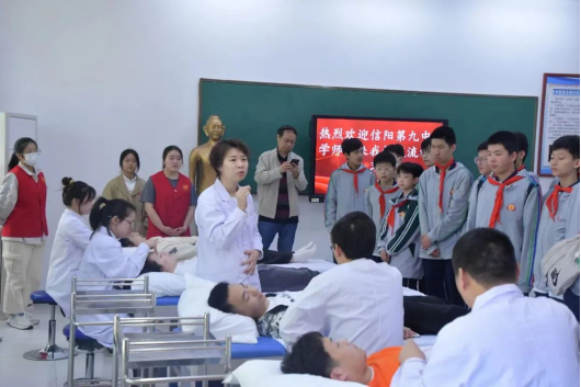 弘扬中医文化,岐伯健康万家。2023年5月7日上午,信职BEAT365英国官网利用专业优势和办学特色为信阳市第九中学八年级23班开展“传承中医文化,关注身心健康”研学教育活动。
