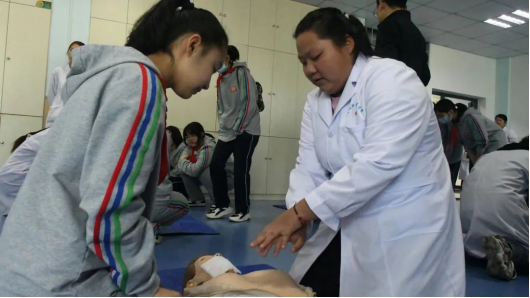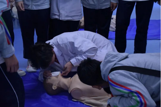 在院前急救实训室,老师为同学们讲解了心肺复苏急救措施,BEAT365英国官网兴医社的成员为他们展示了心肺复苏流程并指导他们进行实践操作。