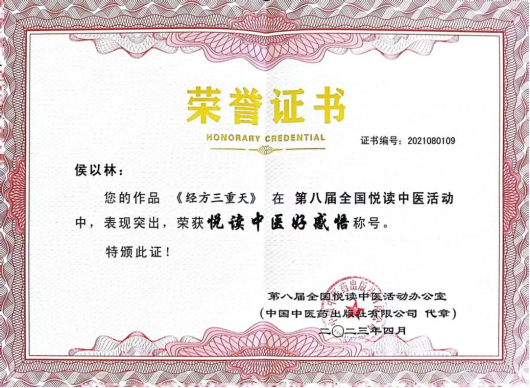 BEAT365英国官网侯以林同学的作品《经方三重天》在第八届全国悦读中医活动中被评为“中医好感悟”。