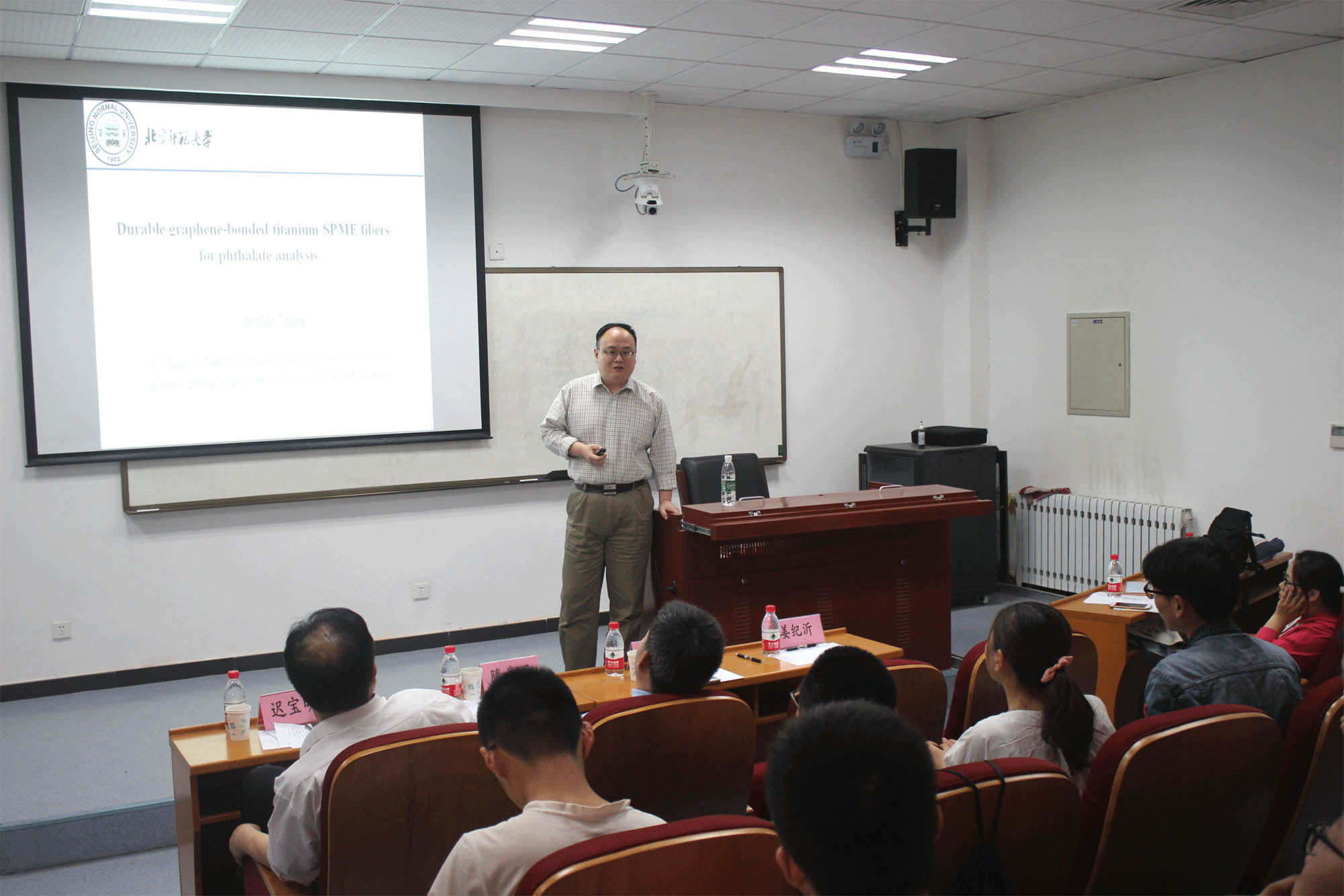5月4日下午北京师范大学水科学研究院张波涛副教授应邀在明德楼220报告厅做学术报告,报告题目为:“钛基石墨烯固相微萃取纤维的制备及应用”。本次报告为地震科学系专业培训及学术报告系列第五讲,由迟宝明副院长主持。伟德官网地下水科学与工程专业本科生、研究生、青年教师共90余人参加了报告。
