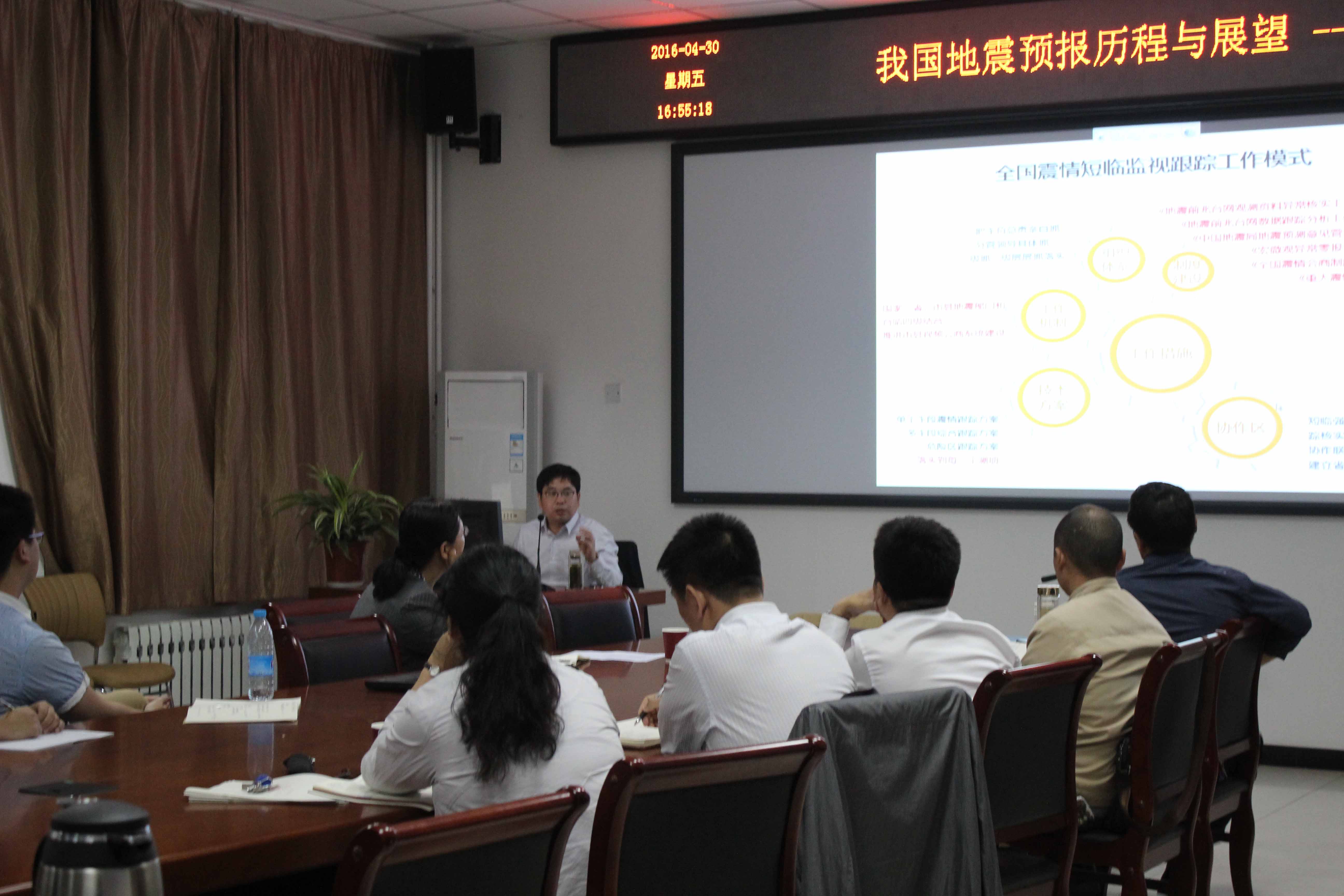 2016年04月29日下午,中国地震局监测预报司预报管理处处长马宏生副研究员应邀来伟德官网做学术报告,报告由地震科学系李莹甄副研究员主持,地震科学系系主任沈军研究员、书记达勇、学科带头人万永革研究员等教师参加了学术报告,以及部分地球物理专业学生参加了报告会。