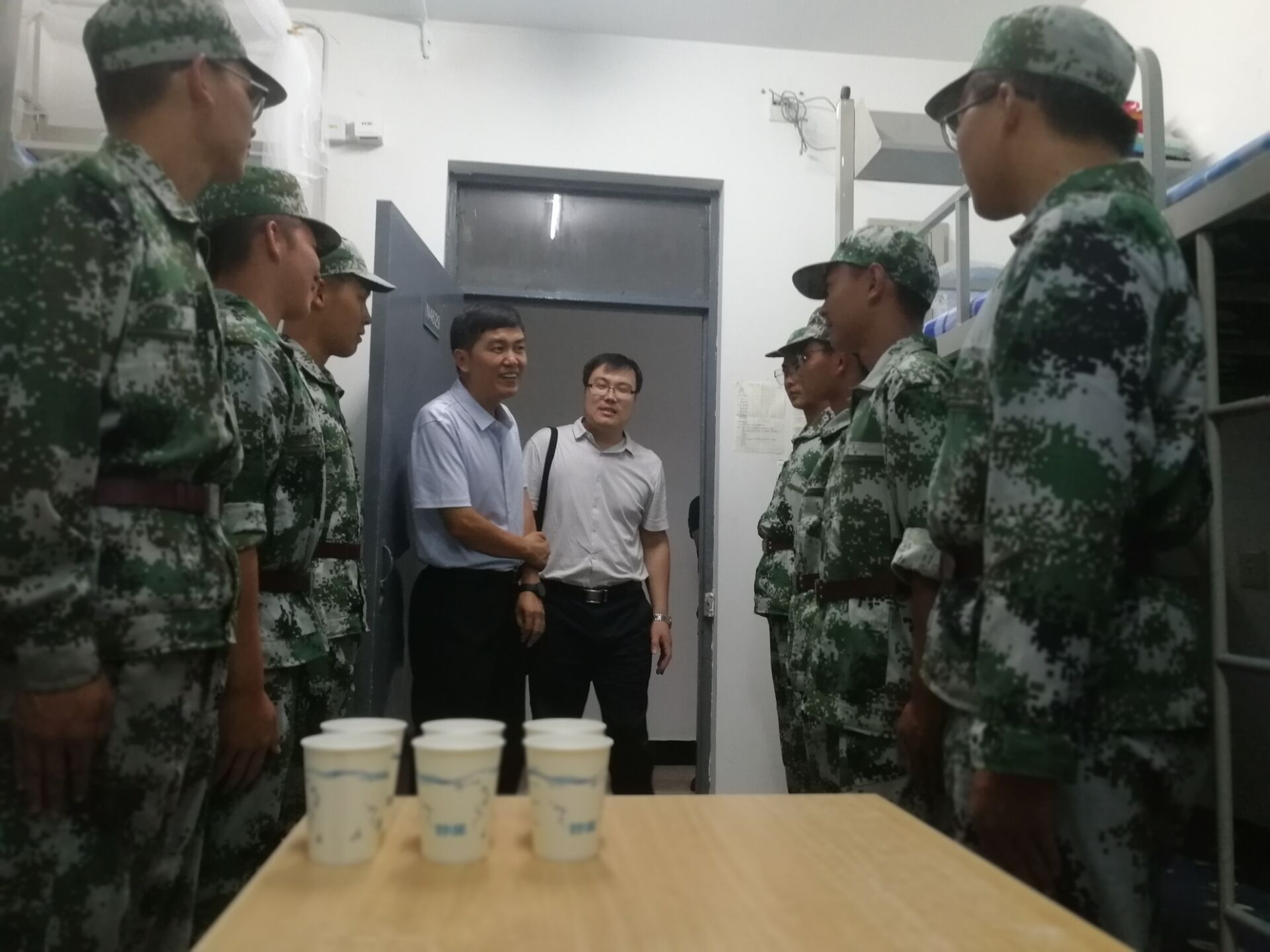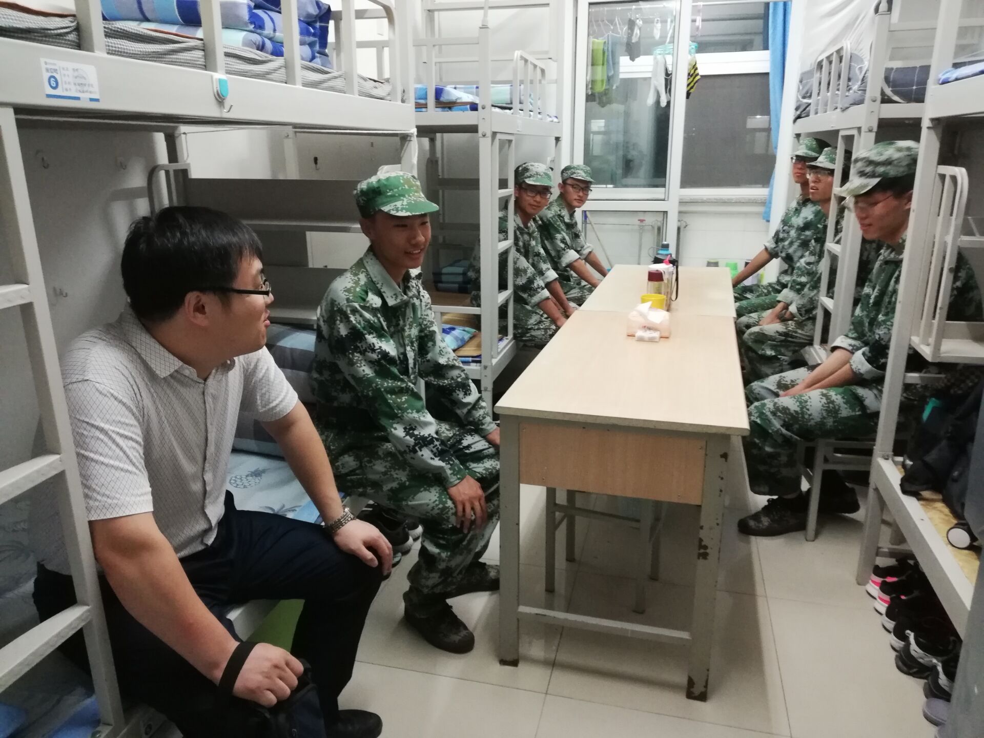 学校党委副书记李军在学生工作处领导的陪同下也来到了伟德官网新生宿舍看望新生,李书记一个一个宿舍的走进去,亲切的与同学们交谈,了解学生军训和生活情况,鼓励大家坚持完成军训任务。
