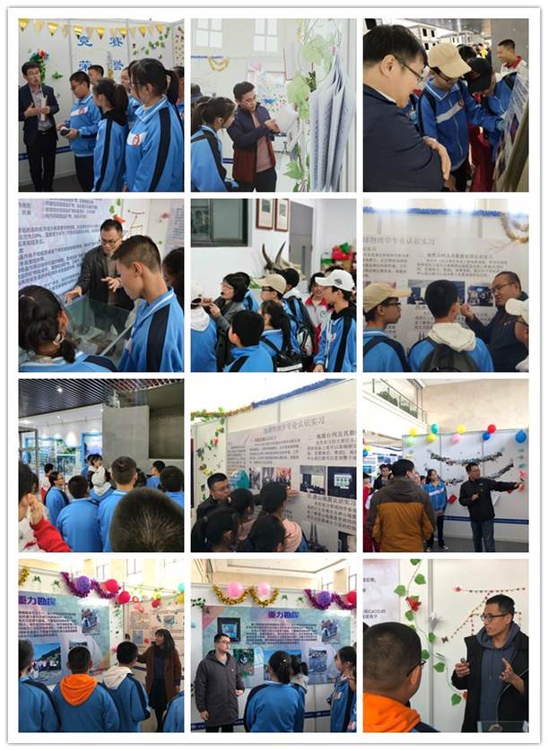 走进正在天仪楼举办的伟德国际victor1949地质实习成果展展厅,中学生们认真聆听专业老师们深入浅出的生动讲解,并饶有兴致的观看现场展出的各种岩石标本和实习装备;来到灾害模拟实验室,土木工程学院宣越老师带领大家参观地震监测仪器和房屋缩比模型,现场科普防震减灾知识,引起了大家对灾害预防的极大兴趣;在岩石标本实验室、地震台网中心、古生物标本实验室、水槽实验室,中学生们被各种矿物、化石和实验仪器深深吸引,伟德国际victor1949的老师们分组在现场进行介绍,耐心的解答了大家提出的各种问题。