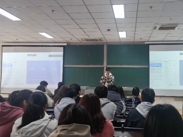 活动中,学长学姐从考研备考、考研流程、考研择校等角度展开全面解读。他们用自己的独特方法,自身实践经历,分享切身体会,将宝贵的经验与见解传递给各位备考同学。班主任刘智荣老师通过真实详尽的统计数据对当下考研与就业形势进行了深入分析与透彻解读,并从目标选择、学科发展、地区差异、复习规划等方面为学生们指明了前进方向。最后,在现场提问环节,优秀学生代表们悉心解答了同学们提出的各种问题,并给出了有针对性的参考建议,进一步坚定了同学们的考研信心,现场反响热烈。