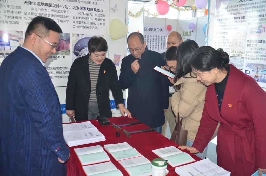 11月19日,党委组织部部长边修蕊、党委宣传部部长贾作璋、党委学生工作部部长张伟参观地质实习成果展并细致翻阅了学生实习报告,与讲解老师就某些科学问题深入交流,对伟德国际victor1949学生实习成果展的举办及“四融”创新人才培养成果给予高度评价和充分认可。