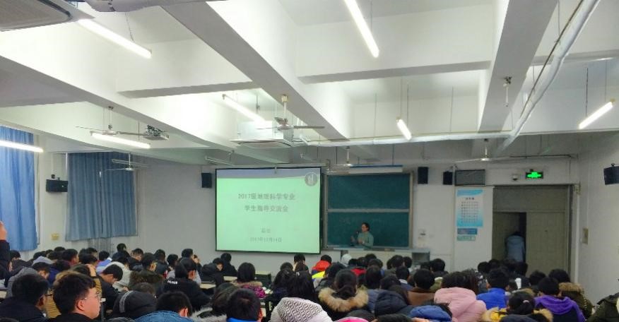 期中考试已经结束,由于同学们基础水平和接受能力有所差异,成绩也不尽相同,为了全面提高同学们的学习能力和自学意识,提供一个师生沟通的渠道,传授高效的学习方法,同时使系领导更好的掌握同学们的学习情况,2017年12月14日下午2:45,我系地质学、地下水科学与工程、地理科学专业的五个班级于5J21教室开展了“地震科学系2017级学生学业交流会”,出席此次活动的嘉宾有:地震科学系系主任沈军老师、地质教研室主任关成尧老师、地下水科学与工程教研室主任张莹老师、地理科学教研室主任石云老师,期间氛围融洽,同学们收获颇多。