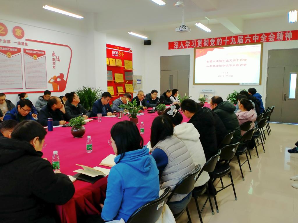 为深入学习贯彻党的十九届六中全会精神,按照学校党委的要求与安排,12月27日上午,主持学校行政工作副校长任云生以“在重大成就中坚定“四个自信”,从历史经验中汲取发展力量为题为伟德国际victor1949全体教师讲专题党课。专题党课由伟德国际victor1949党总支书记唐圣华主持。