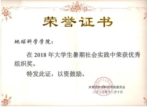 10月31日晚,学校在图书馆报告厅举办2019年大学生暑期社会实践成果报告会,会上对2019年大学生暑期社会实践获奖集体和团队进行了表彰,伟德官网获得“优秀组织奖”,这也是伟德官网继原地震科学系于2015年、2016年、2017年、2018年连续四年获得该奖的基础上第五次获得“优秀组织奖”。