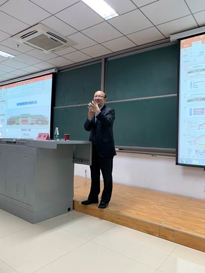 刘财教授首先为大家介绍了吉林大学地球探测科学与技术学院的基本情况,并欢迎学生报考该研究生。刘教授结合自身多年的科研及教学工作,以“地球物理信息对盆地油气的新认识”为例,为大家揭示了地球物理探测技术在对地球及地质过程认识中的重要作用,刘教授用幽默风趣的语言、生动形象的类比、深入浅出的讲解,让大家切实体会到了地球物理学科魅力。报告会上刘财教授还积极与到场师生互动,耐心解答相关问题,并在地球物理和勘查技术与工程专业学习、科学素养培养等方面给予了学生一系列有益的建议。
