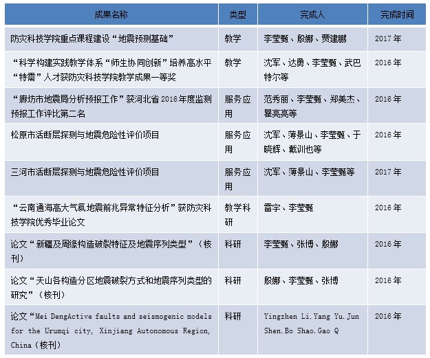 提供地震科研数据服务;指导本科生和研究生开展科研,完成毕业论文,发表论文;申报各级科研项目;开展学术交流